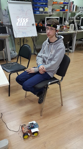 Действующая модель астраханских вундеркиндов состоит из мобильной колёсной платформы, которой можно управлять дистанционно, и контроллера, воспринимающего сигналы, генерируемые мозгом оператора.