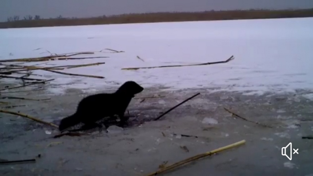 Видеограф Алексей Кашин "застукал" уже всем полюбившуюся американскую норку за обедом. Животное ныряет под лёд за жуками плавунцами. Причем, стоит отметить, что даже на охоте норка грациозна и мила.