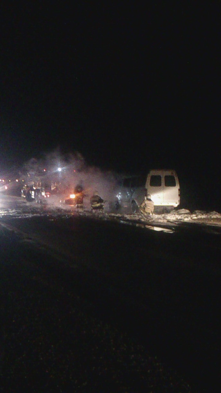Вчера, 24 октября, в 21:37 на трассе Астрахань-Аксарайск при выезде с микрорайона Бабаевского загорелась маршрутное такси №190.