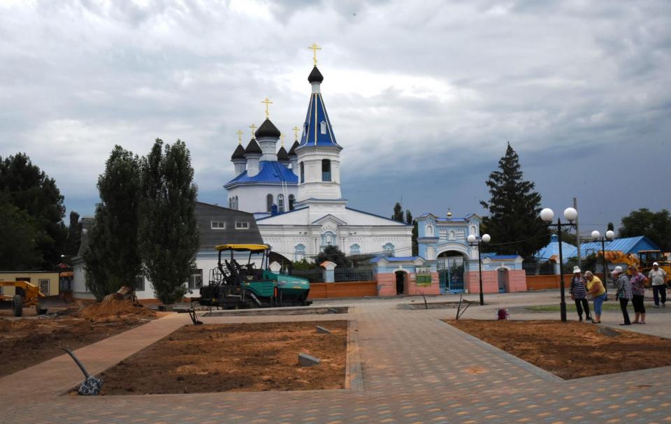 Первым этапом реализации проекта была предусмотрена также реконструкция дороги по ул. Печенегской, укладка тротуарной плитки вдоль храма. Работы находятся на завершающем этапе.