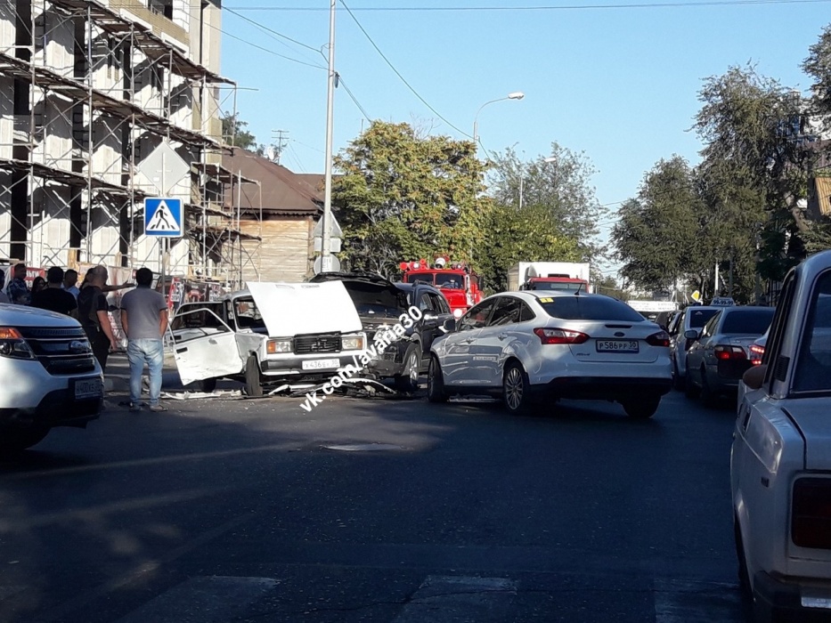 В центре Астрахани "жёстко" столкнулись сразу три автомобиля