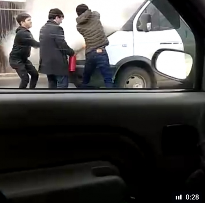 Инцидент произошел накануне в центре города напротив ТЦ "Кристалл". Прямо на дороге загорелась "ГАЗель". К счастью, на помощь вовремя подоспели бравые мужчины, в том числе и водитель такси, откуда пассажир вел съемку. Впоследствии видеоролик появился в группе "Типичная Астрахань".