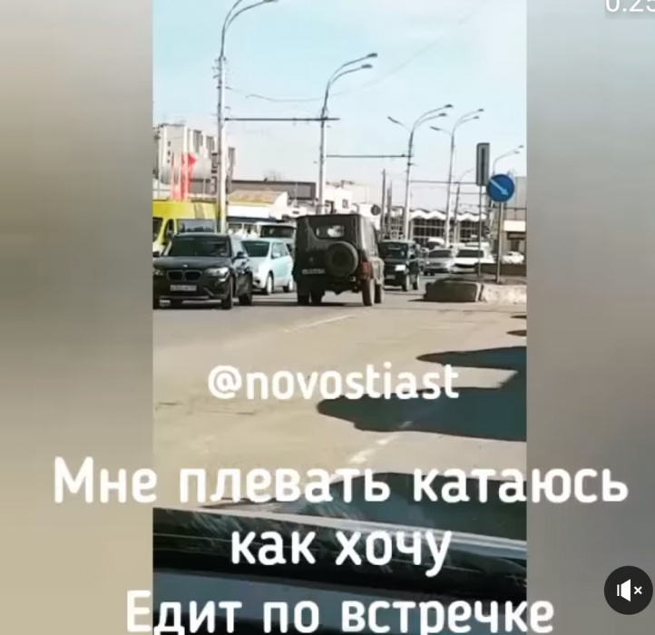 Очевидцы засняли автомобиль "УАЗ", который у ТЦ "Ярмарка" медленно, не спеша движется по встречной полосе. При этом остальные участники дорожного движения пытаются аккуратно объехать "чужеземца".