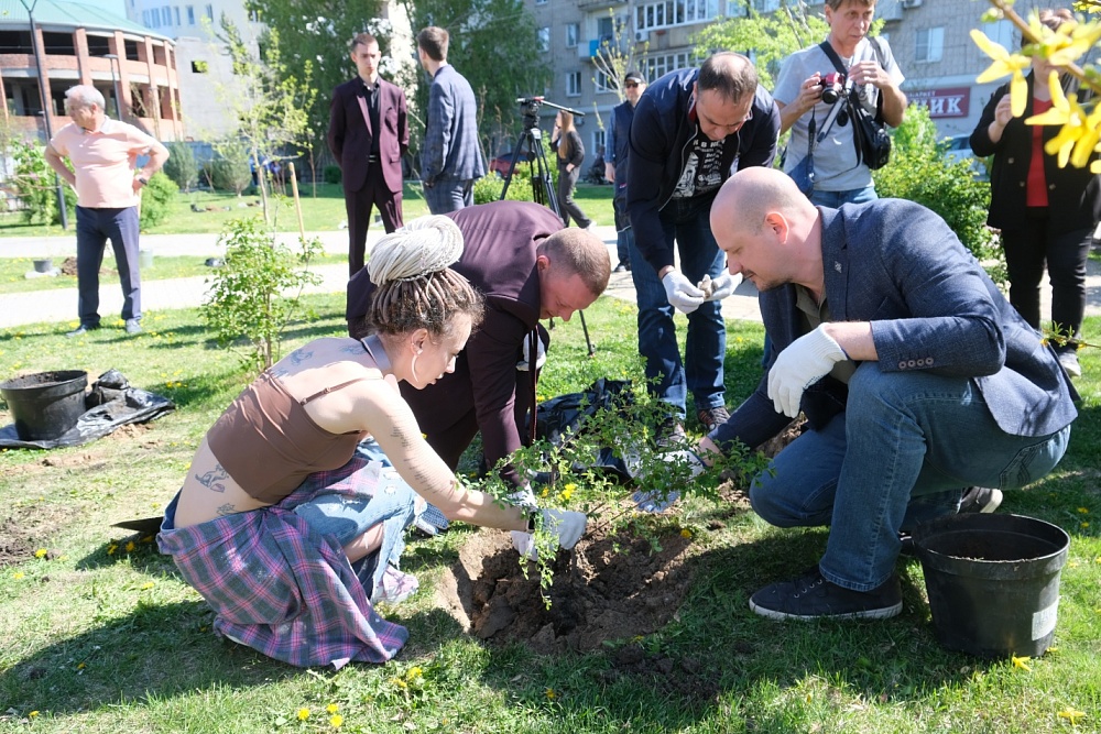 В сквере Журналистов высадили полтора десятка кустов шиповника, спиреи Вангутта и форзиции. Также покрасили леерное ограждение вокруг детской площадки, побелили деревья.